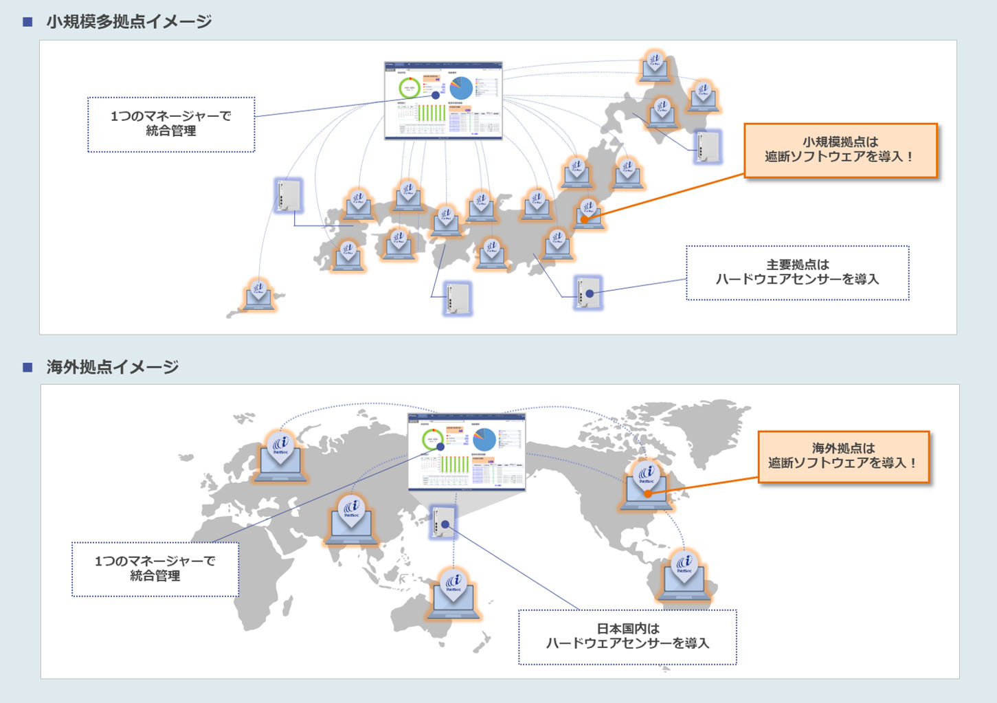 背景として、小規模拠点や海外の工場・営業所・保守拠点・物流センターなど、拠点を多数抱える分散運用が一般化している。こうした国内外の拠点では、機器調達や配送のリードタイム、現地要員や保守体制の不足といった制約からセキュリティの整備が後回しになりやすく、持ち込み機器や未承認機器によるシャドーITの把握・対処が課題である。