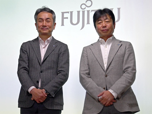 写真1:富士通 AI戦略・ビジネス開発本部 本部長の岡田英人氏(写真左)と、富士通Japan 特定プロジェクト対策本部 本部長の國分出氏拡大画像表示