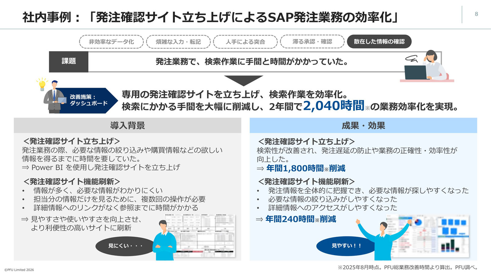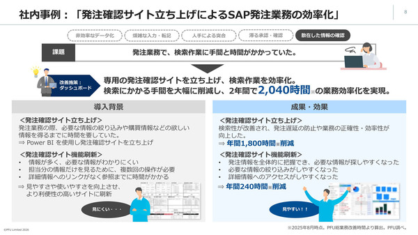 図2:PFUが自社で取り組んだ業務改善事例「発注確認サイト」の概要(出典:PFU)拡大画像表示