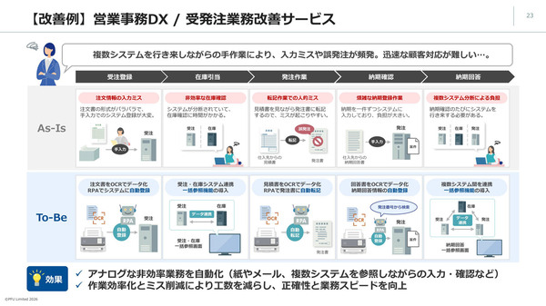 PFU、営業事務・経理業務を効率化するSI「プロセスRe:Design デジタライズサービス」