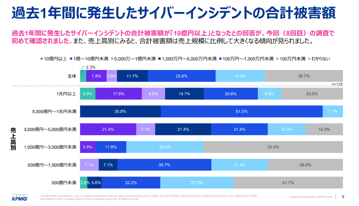 図1:過去1年間に発生したサイバーインシデントの被害額(出典:KPMGジャパン)拡大画像表示