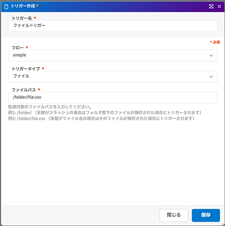 画面2:ストレージ上のファイルを操作するフローアイテムの選択画面(出典:テラスカイ) これに関連して、ストレージへのファイルの作成や更新を検知して連携フローを自動的に実行する「ファイルトリガー機能」(画面3)を追加した。外部システムからのファイル送信をトリガー(契機)とした連携処理を実現できる。