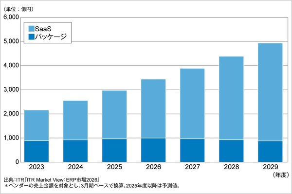 図1:ERP市場における規模の推移と予測:提供形態別(2023~2029年度)(出典:アイ・ティ・アール)拡大画像表示