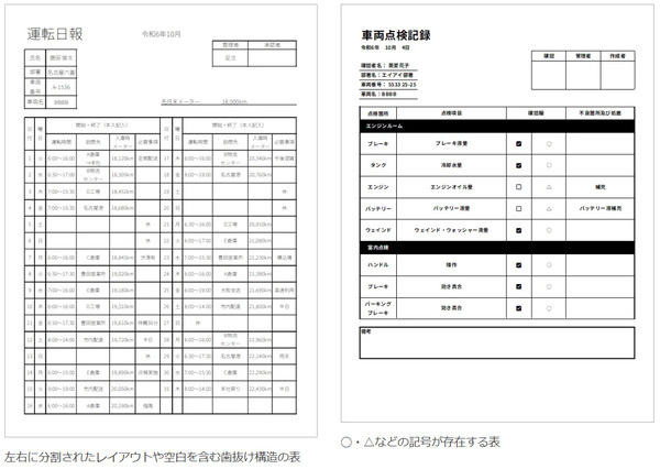 図1:運転日報や車両点検記録をAI-OCRで精度よく読み取れるようにした(出典:AI inside)拡大画像表示