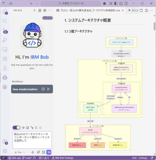 画面1:開発支援AIエージェント「IBM Bob」の画面例(出典:日本IBM)拡大画像表示