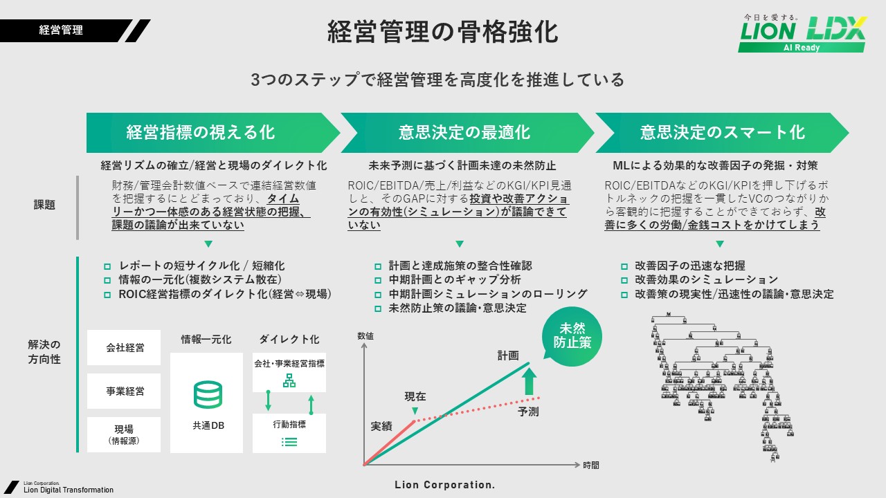 図1:ライオンが取り組む経営管理の骨格強化のポイント(出典:ライオン)拡大画像表示