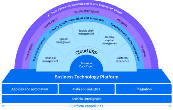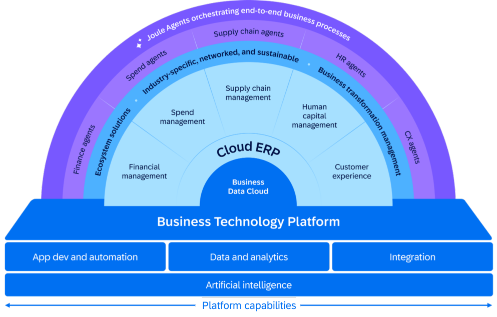 図1:「SAP Business Technology Platform(BTP)」の構成図((出典:SAPジャパン)拡大画像表示