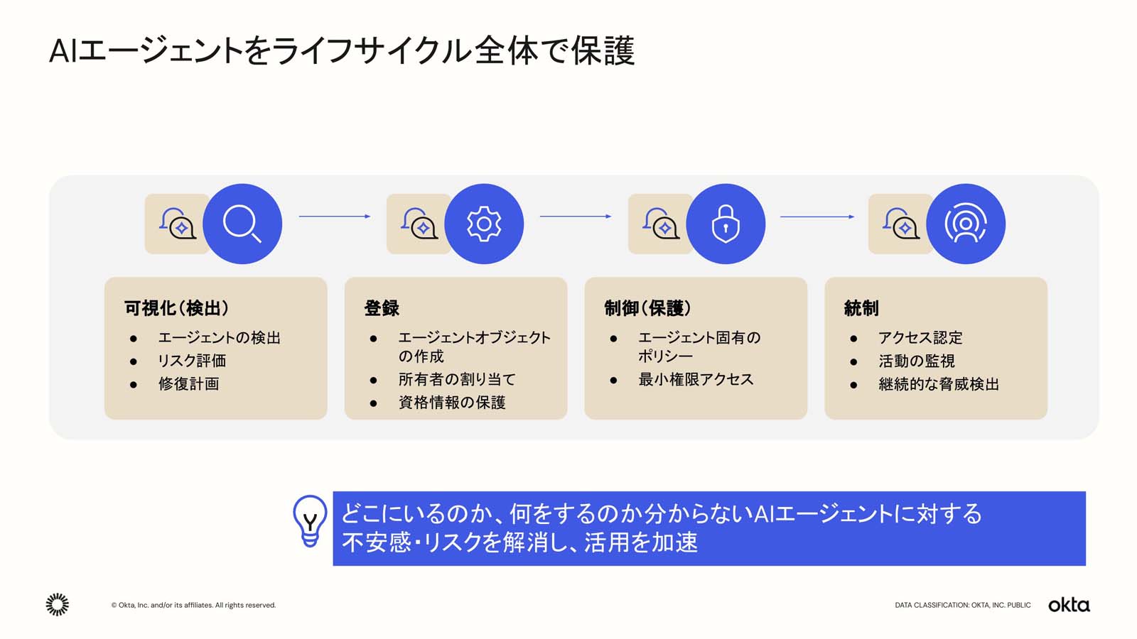 図2:「Okta for AI Agent」でAIエージェントを管理する流れ(出典:Okta Japan)拡大画像表示