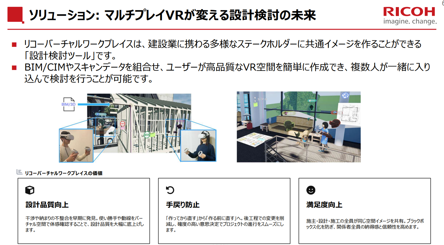 リコージャパン、VRを活用した設計検討ツール「RICOH Virtual Workplace」で建設DXを推進