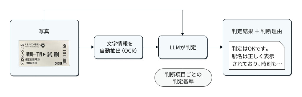 今回、特に属人性が高く負荷が大きかった業務として、設置機器の設定値が正しいかどうかをマニュアルと照合して判定する作業をAIで自動化した。OCR(光学文字認識)による文字抽出と、大規模言語モデル(LLM)による意味理解を組み合わせて実現した(図1)。