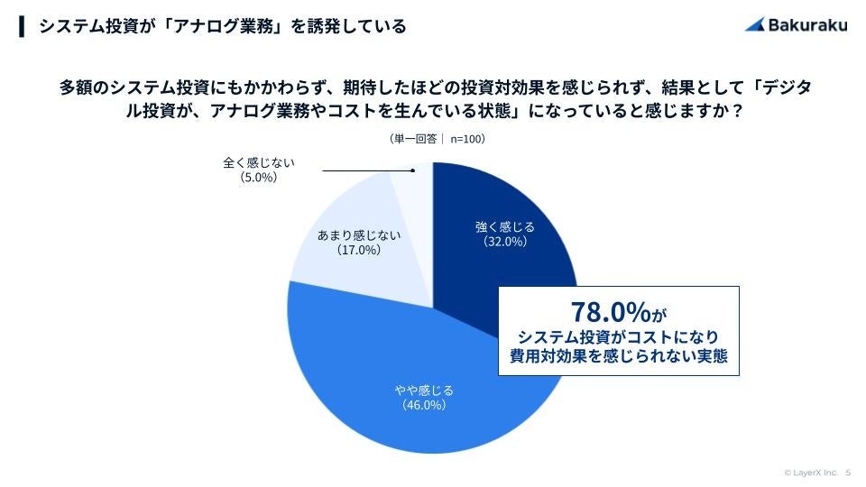 図4:デジタル投資がアナログ業務やコストを生んでいると感じるか(出典:LayerX)拡大画像表示