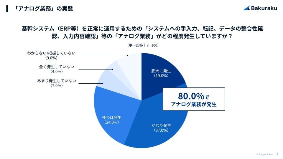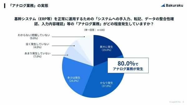 大企業の8割、基幹システム運用で手入力や内容確認などのアナログ業務が発生─LayerX調査