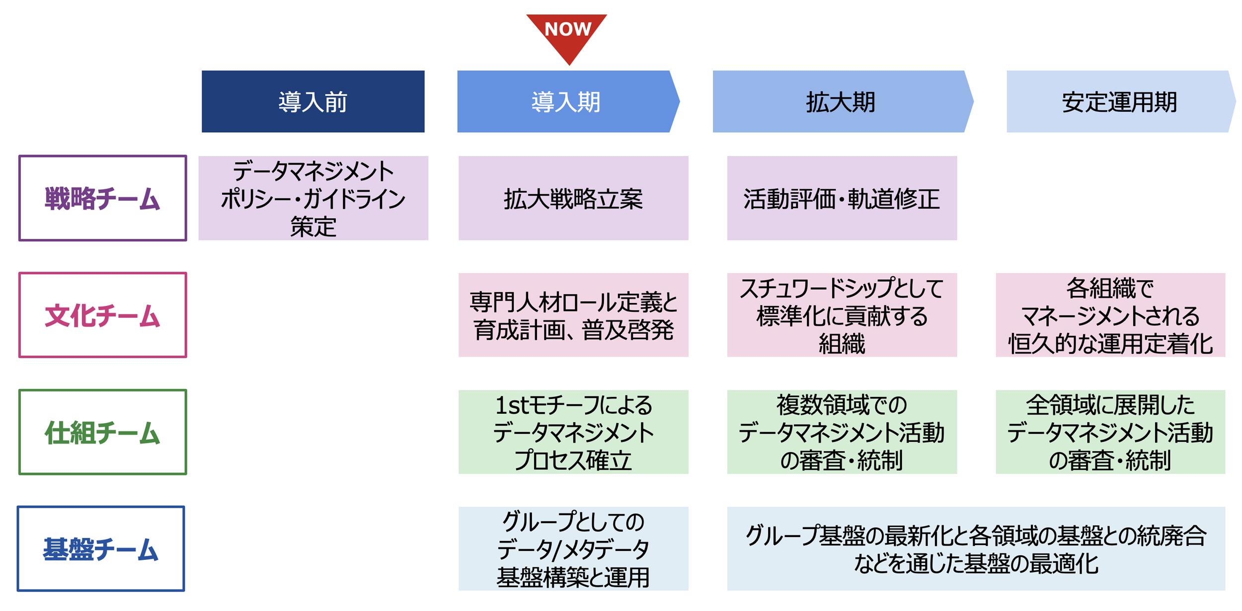 「マネジメント層に対しては、『すぐに成果が出ない』という性質を理解したうえで、腰を据えた取り組みを認めてくれる支援者を確保することが鍵を握ります。一方の担当者層に対しては、データマネジメントの潜在的な問題意識を持っている現場の実務者を発掘し、ネットワークを広げていくことが組織的な浸透の起点となります」(吉岡氏)