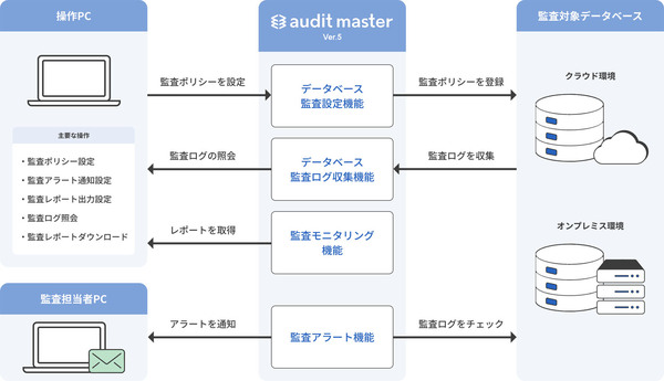 図1:データベース監査ソフトウェア「AUDIT MASTER」の概要(出典:アクアシステムズ)拡大画像表示