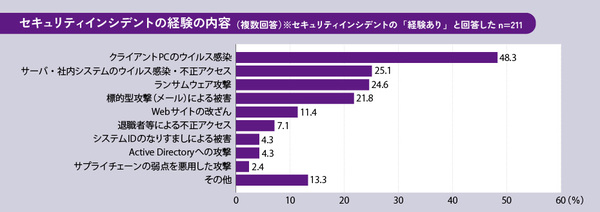 図2:経験したセキュリティインシデントの内容(出典:ソフトクリエイト)拡大画像表示