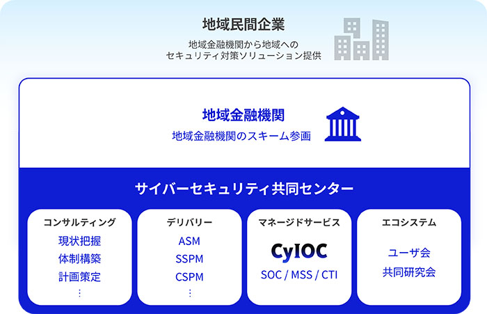 図1:地域金融機関のサイバーセキュリティ対策を体系化した「サイバーセキュリティ共同センター」のイメージ(出典:NEC)拡大画像表示