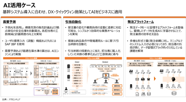 2018年、同社は基幹システムの刷新プロジェクトに着手した。SAP S/4HANAへの移行と並行して、周辺システムにおいてはAIの活用にも取り組んだ。AIを活用した在庫引当システムは2022年4月に最初の拠点で稼働を開始し、全センターへの展開を完了している。AIを活用した需要予測システムも2025年4月に稼働させた(図1)。