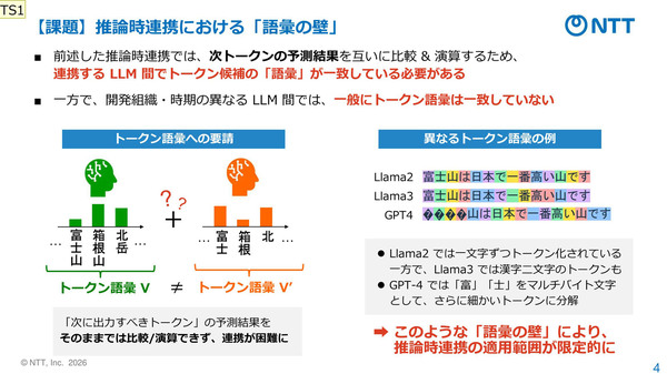 図2:複数モデルが推論時に連携するためにはトークン語彙は一致している必要がある(出典:NTT)拡大画像表示