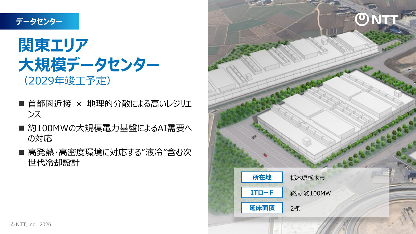 図3:NTTデータグループが栃木県栃木市に整備するデータセンターの概要(出典:NTT、NTTデータグループ、NTTドコモビジネス)拡大画像表示